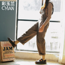 彩玉兰2016秋冬新款毛呢背带裤长裤女宽松格子阔腿裤韩版潮九分裤