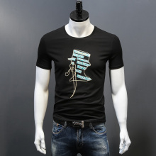 2017夏季新款男士t恤短袖修身上衣帅小伙男装学生青年图案印花 潮