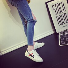 2017春季韩版小白鞋平跟低帮休闲系带圆头板鞋运动鞋跑步透气单鞋