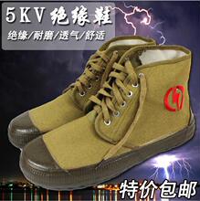 5kv安全电工绝缘鞋劳保帆布透气高帮腰春秋男女防电解放胶鞋