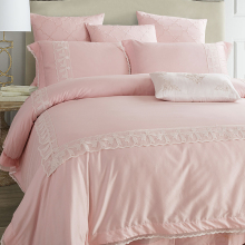 法式蕾丝公主粉色纯棉四件套酒店宾馆床上用品60支全棉婚庆六件套
