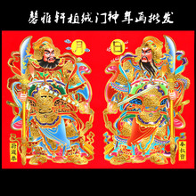 高档植绒门神烫金秦叔宝尉迟恭门贴年画对联春联财神批发家直销