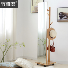 竹雅荟带镜子衣架落地卧室可移动挂衣架简约多功能衣架全身镜