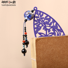 烟雨江南书签金属创意复古流苏礼品手工中国风蓝古典叶脉树叶原创