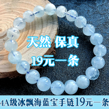 天然冰飘海蓝宝手链4A海蓝宝单圈清仓手链水晶时尚饰品情侣款