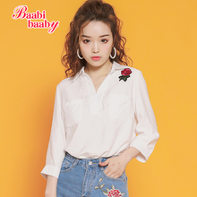 2017春装新款白色衬衫女韩版宽松玫瑰绣花修身显瘦学生衬衣女休闲