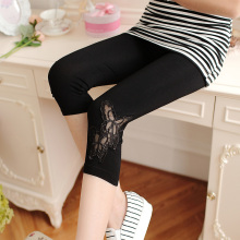 蕾丝花边打底裤女夏季薄款外穿七分裤弹力显瘦大码7分裤紧身中裤