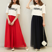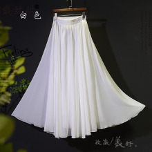 高腰显瘦半身长裙夏女雪纺波西米亚休闲裙子纯色半身裙沙滩中长款