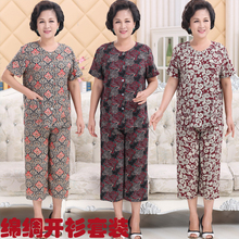 中老年绵绸套装棉绸妈妈装宽松开衫女装夏装短袖老年人造棉奶奶装