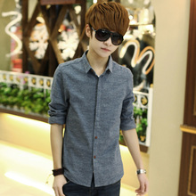 纯色长袖衬衫男士秋夏薄款时尚休闲棉麻青少年衬衣修身潮流男装
