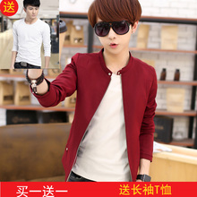 2016春装新款夹克男青少年纯色修身外套韩版时尚潮男装薄款夹克衫