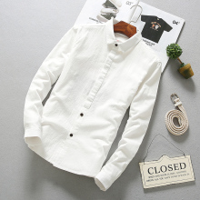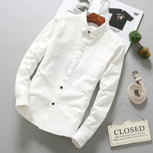 长袖衬衫男春季青少年男士纯色棉麻修身衬衣休闲学生男装打底上衣