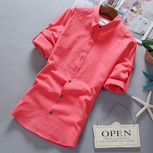 长袖衬衫男士夏季休闲棉麻衬衣青少年韩版修身纯色潮流男装上衣