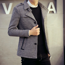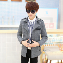 青少年风衣男韩版修身中长款学生秋冬毛呢外套潮流加绒呢子厚大衣