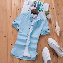 夏季薄款衬衫男士青年修身韩版白色寸衫学生棉麻短袖潮流休闲衬衣