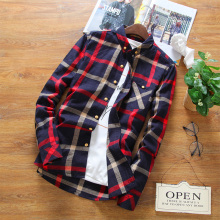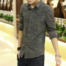 春季长袖衬衫男青少年棉麻格子上衣韩版修身学生流行个性衬衣潮
