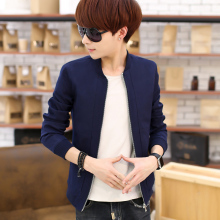 2017春季薄款夹克男短款装纯色青少年韩版修身外套学生圆领上衣潮