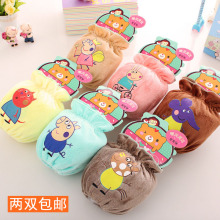 宝宝袖套 儿童短款护袖套卡通可爱小猪毛绒布印花耐脏秋冬1-3-5岁