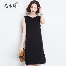 春夏季韩版中长款针织衫宽松无袖流苏开叉连衣裙春秋背心打底裙潮