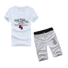 夏季男士圆领短袖T恤套装韩版修身薄款青少年五分裤休闲运动套装