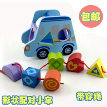 包邮木制趣味形状认知配对车宝宝大号串珠益智玩具穿珠子积木弱视