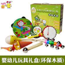 婴儿木质玩具礼盒奥尔夫乐器0-1-2-3新生儿手摇铃组合儿童拨浪鼓