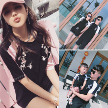 亲子装秋冬装2016新款超精致绣花棒球服一家三口亲子外套