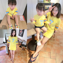 亲子装夏装2016新款一家三口母子装上衣短袖T恤母女全家装连衣裙