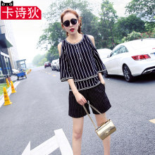 春夏新款套装女名媛短裤黑白条纹马甲背三件套修身时尚气质女夏装
