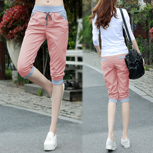 松紧腰七分裤女夏薄款休闲裤中裤宽松学生马裤大码纯棉显瘦哈伦裤