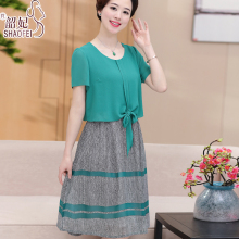 中老年女装连衣裙2017新款妈妈夏装雪纺套装30岁40两件套宽松裙裤