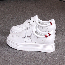 2017夏季镂空帆布鞋女透气PU面女单鞋魔术贴松糕厚底女鞋白色板鞋
