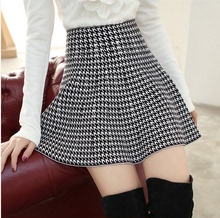 杰斯澜黛 2015秋装百搭伞裙 千鸟格短裙 蓬蓬裙高腰 女装半身裙女