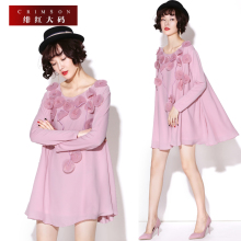 胖mm2017大码女装春装200斤中长款显瘦加肥加大打底衫雪纺连衣裙