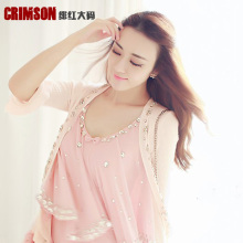 2017春夏欧美大码胖MM大码开衫高端重工丝绵镶钻宽松甜美粉针织衫