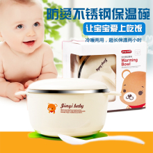 不锈钢儿童注水保温碗吸盘碗防滑婴幼儿带盖饭碗冷暖两用宝宝碗