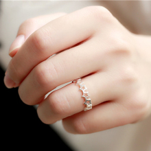 韩版925纯银戒指女日韩水钻叶子食指指环女开口可调节尾戒日韩国