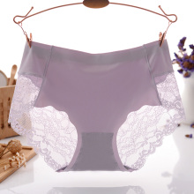 美宅女士冰丝无痕内裤 性感蕾丝中腰舒适春夏薄款三角裤纯棉镂空