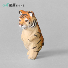 茵曼实木手工木雕摆件老虎 木雕工艺品小老虎客厅摆件家居饰品