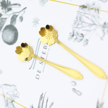 不锈钢樱花勺子 镀金花朵勺子 咖啡勺搅拌勺甜品勺