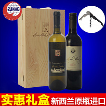 新西兰原瓶进口艾瓦尔干红意大利霞多丽干白2支组合红酒实木礼盒