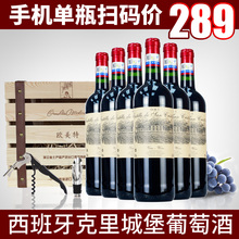 西班牙原瓶进口红酒克里城堡干红葡萄酒 6支整箱装木礼盒