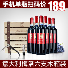 意大利原瓶进口红酒欧美特梅洛干红葡萄酒整箱6支装实木礼盒