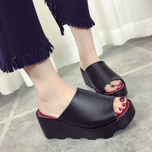 厚底松糕凉拖鞋女夏2017时尚休闲防水台坡跟外穿拖鞋高跟鞋