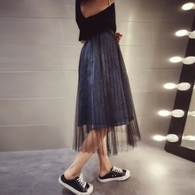 牛仔裙半身裙 2017春夏装新款韩版中长款网纱裙高腰百褶裙女裙子