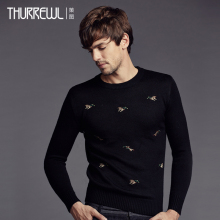 秋冬新款 英伦风套头毛衣 圆领男士修身针织衫 休闲毛衣 25%羊毛