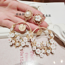 欧雅姿欧美夸张时尚饰品 花朵镶钻大耳环长款饰品人造珍珠耳环女