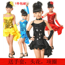 少儿拉丁舞服装女童比赛服儿童节舞蹈服亮片恰恰伦巴表演服包邮