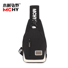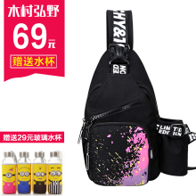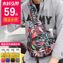 木村弘野男士胸包男韩版潮帆布休闲单肩斜挎包男包印花个性小腰包