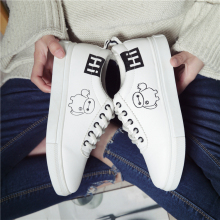 秋季笑脸皮面小白鞋女系带韩版舒适平底运动鞋白色板鞋学生休闲鞋